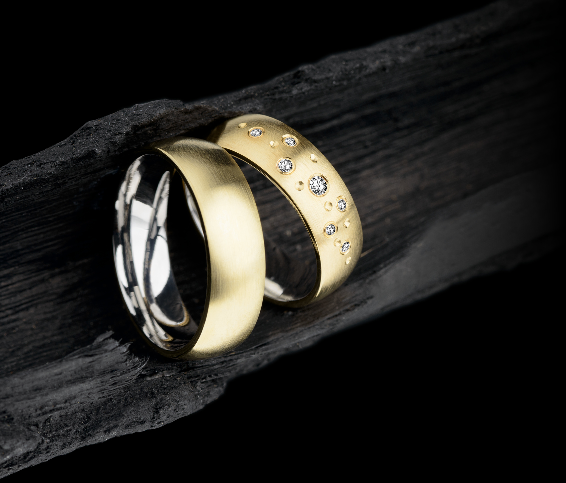 Partnerringe von ERNSTES DESIGN bestechen nicht nur durch individuelle Designs, sondern vor allen Dingen auch durch ihre vielfältigen Materialkompositionen: wir arbeiten mit feinen Beschichtungen aus Gelb- oder Roségold, mit Zirkonia und Brillanten oder auch verschiedenen Veredelungstechniken für unsere Basis aus Edelstahl. So erschaffen wir eine Vielzahl aufregender Kreationen, die für jede Vorliebe und jeden Geschmack das passende Produkt bereithält. Unsere Kollektionen fertigen wir in unserer Schmuckmanufaktur in Nordhorn Aus hochwertigem, antiallergischem Edelstahl mit geschliffenen, mattierten oder polierten Oberflächen. Veredelungen aus 750er Gold/Roségold sowie Platin 960/Titan verleihen den Schmuckstücken eine ganz besondere Wertigkeit und die Brillanten in der Qualität TW/SI setzen funkelnde Akzente …