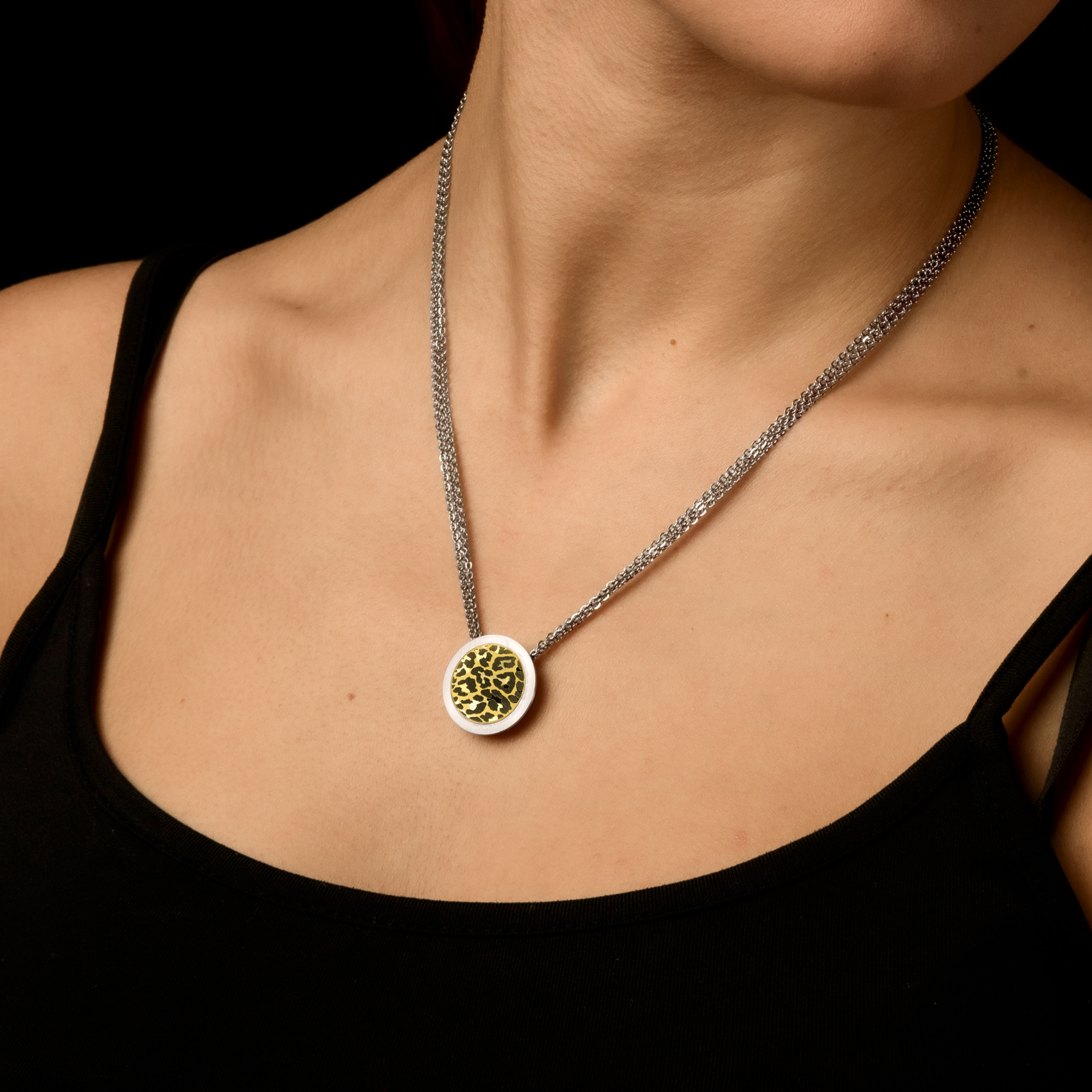 Dieser spannende Matt-Glanz-Effekt lässt den Animal-Print besonders plastisch wirken und verleiht dem Schmuckstück eine luxuriöse Tiefe. Die Kettenöffnung von ca. 3 mm sorgt für eine harmonische Integration an feineren Ketten oder Drahtseilen. Ein exklusives Design, das durch seine Größe und das trendige Leo-Muster überzeugt.