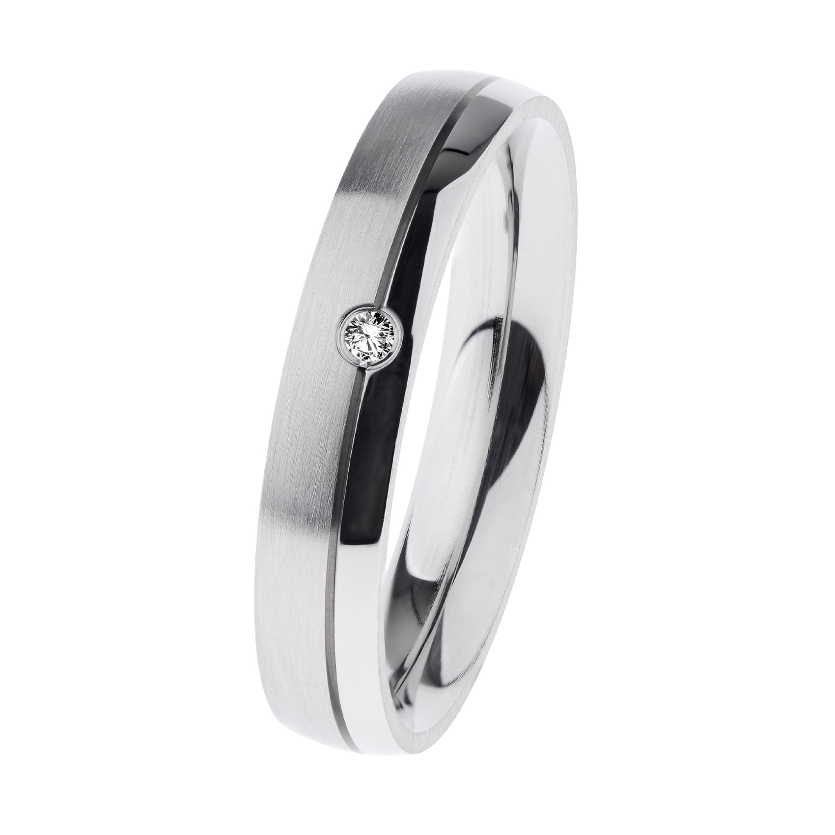 Der elegante Partnerring aus Edelstahl, geschliffen und poliert, mit einem Brillanten bestückt, ist ein perfektes Symbol für Ihre starke Bindung zu einem ganz besonderen Menschen. - Mit diesem wunderschönen Schmuckstück zeigen Sie, dass Ihre Verbindung für immer besteht - Partnerringe von ERNSTES DESIGN bestechen nicht nur durch individuelles Design, sondern vor allem auch durch ihre vielfältigen Materialkompositionen. Wir arbeiten mit spannenden Kombinationen aus Edelstahl und 585er Gelbgold, Roségold sowie Platin. Unsere Kollektionen fertigen wir in unserer Schmuckmanufaktur in Nordhorn aus hochwertigem, antiallergischem Edelstahl mit geschliffenen, mattierten oder polierten Oberflächen. Unsere Veredelungen verleihen den Ringen eine besondere Wertigkeit.