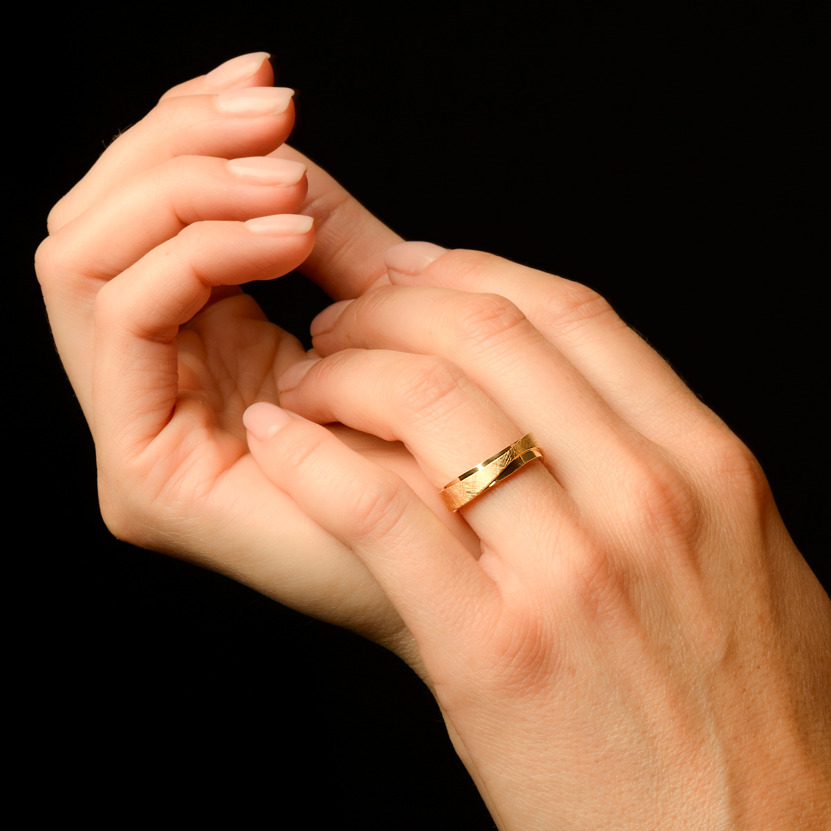 Mit seiner eleganten Form, sanftem Glanz und zeitloser Schönheit verleiht der asymmetrisch geschwungene Ring aus Edelstahl jedem Look eine moderne Note.