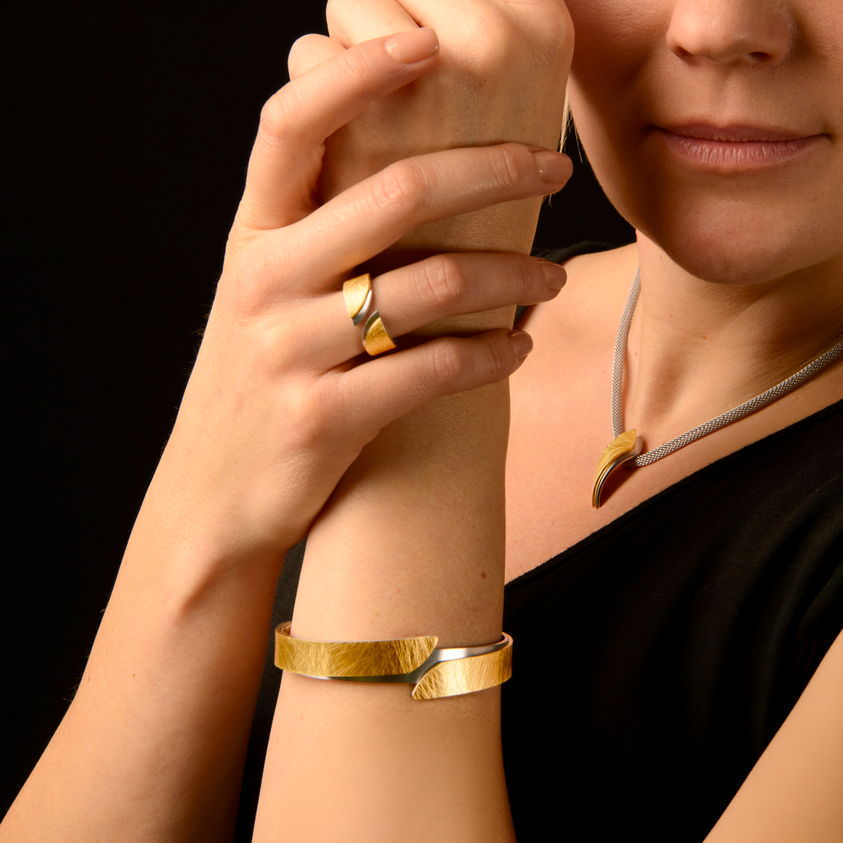 Raffiniert durch sein gebogenes, versetztes Design besticht dieser auffällige Anhänger mit dem aufregenden Gegensatz zwischen, gekratzten und polierten Edelstahl, teilweise Gelbgold beschichtet. Dieser Anhänger verleiht jedem Outfit ein Hauch von Eleganz. Der aufregende Anhänger von ERNSTES DESIGN wurden unter höchsten Ansprüchen in eigener Manufaktur in Deutschland gefertigt. ERNSTES DESIGN Schmuck ist pflegeleicht, antiallergisch und von herausragender Qualität! Die wunderschöne Kombination aus stilvoller, zeitloser Eleganz und edlen Materialien, macht die Schmuckstücke von ERNSTES DESIGN zu einem einzigartigen Erlebnis.
