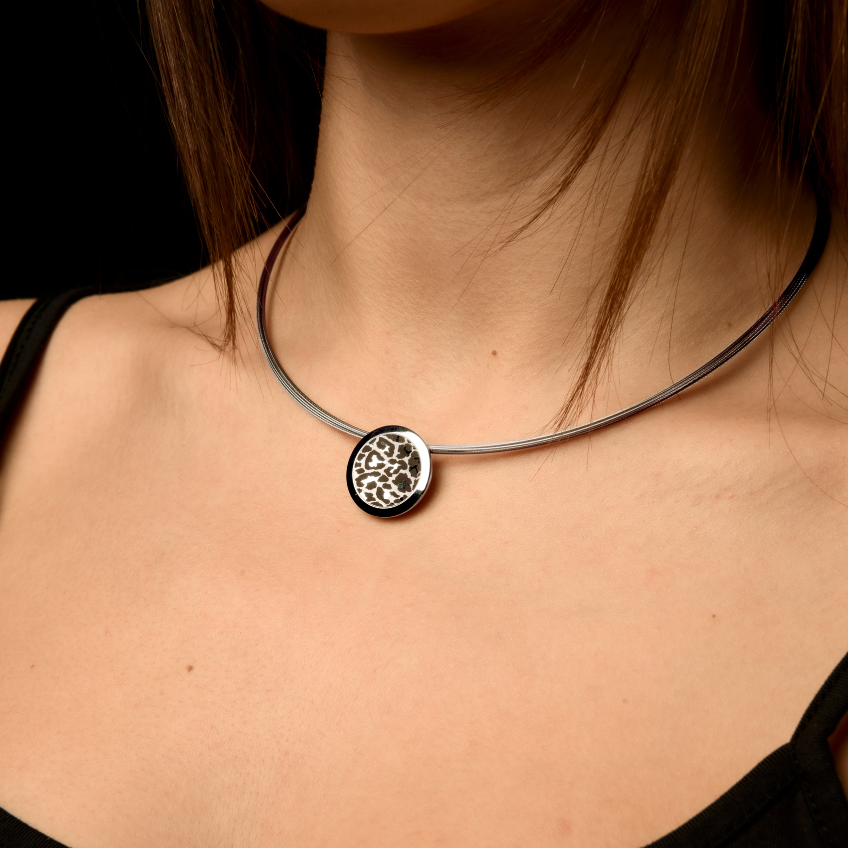 Dieser spannende Matt-Glanz-Effekt lässt den Animal-Print besonders plastisch wirken und verleiht dem Schmuckstück eine luxuriöse Tiefe. Die Kettenöffnung von ca. 3 mm sorgt für eine harmonische Integration an feineren Ketten oder Drahtseilen. Ein exklusives Design, das durch seine Größe und das trendige Leo-Muster überzeugt.