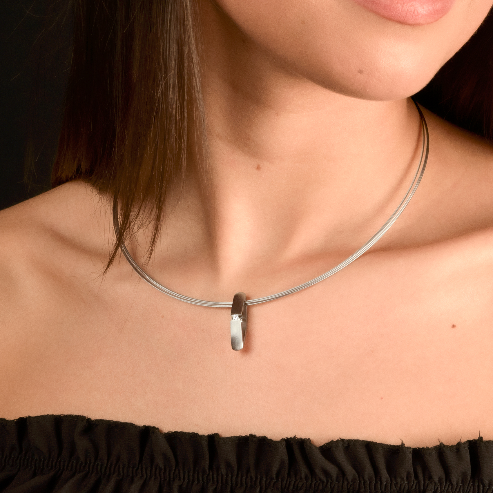 Der moderne Anhänger aus Edelstahl ist mit einer matten, polierten Oberfläche und einem kostbaren Brillanten versehen, der durch seine besondere Fassung, für eine Extraportion Eleganz beiträgt. Der zeitlos schöne Anhänger ist ein unverzichtbares Accessoire für jeden Anlass und kann mit einer Kette oder einem Seil getragen werden. Nichts Schmückt Sie so glanzvoll schön wie Brillantschmuck,. Ob als Anhänger an einer Kette, als funkelndes Accessoires in Ihren Ohren oder in Form eines Ringes an Ihrer Hand - lassen Sie sich brillant verzaubern. In unserer perfekt aufeinander abgestimmten BRILLANT- Serie designt und hergestellt in eigener Manufaktur, finden Sie alles was Ihr Herz begehrt. Anhänger mit Brillanten in verschiedenen Formen und Grössen, jeweils dazugehörige Ohrringe sowie Ringe