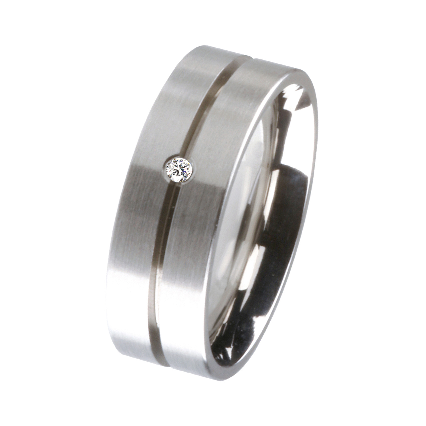 Der Ring aus unserer Schmuckmanufaktur ist aus Edelstahl gefertigt und besticht durch seine stilvoll matte Oberfläche. Der glänzende Brillant verleiht dem Ring eine edle Eleganz. ERNSTES DESIGN Partnerringe sind langlebige Begleiter für Beziehung oder den Bund des Lebens.