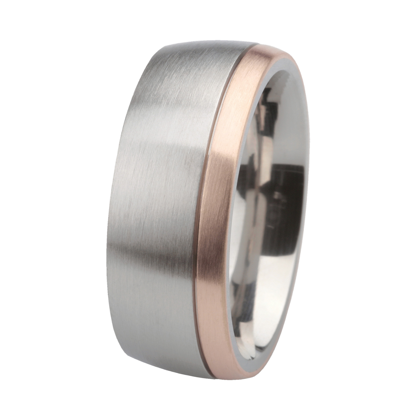 Dieser Ring aus hochwertigem Edelstahl mit 585er-Roségold wurde in eigener Manufaktur hergestellt und ist mit viel Herzblut gefertigt worden. Die edle,matte Oberfläche in Kombination mit dem Roségold, verleiht dem Ring eine einzigartige Ausstrahlung.