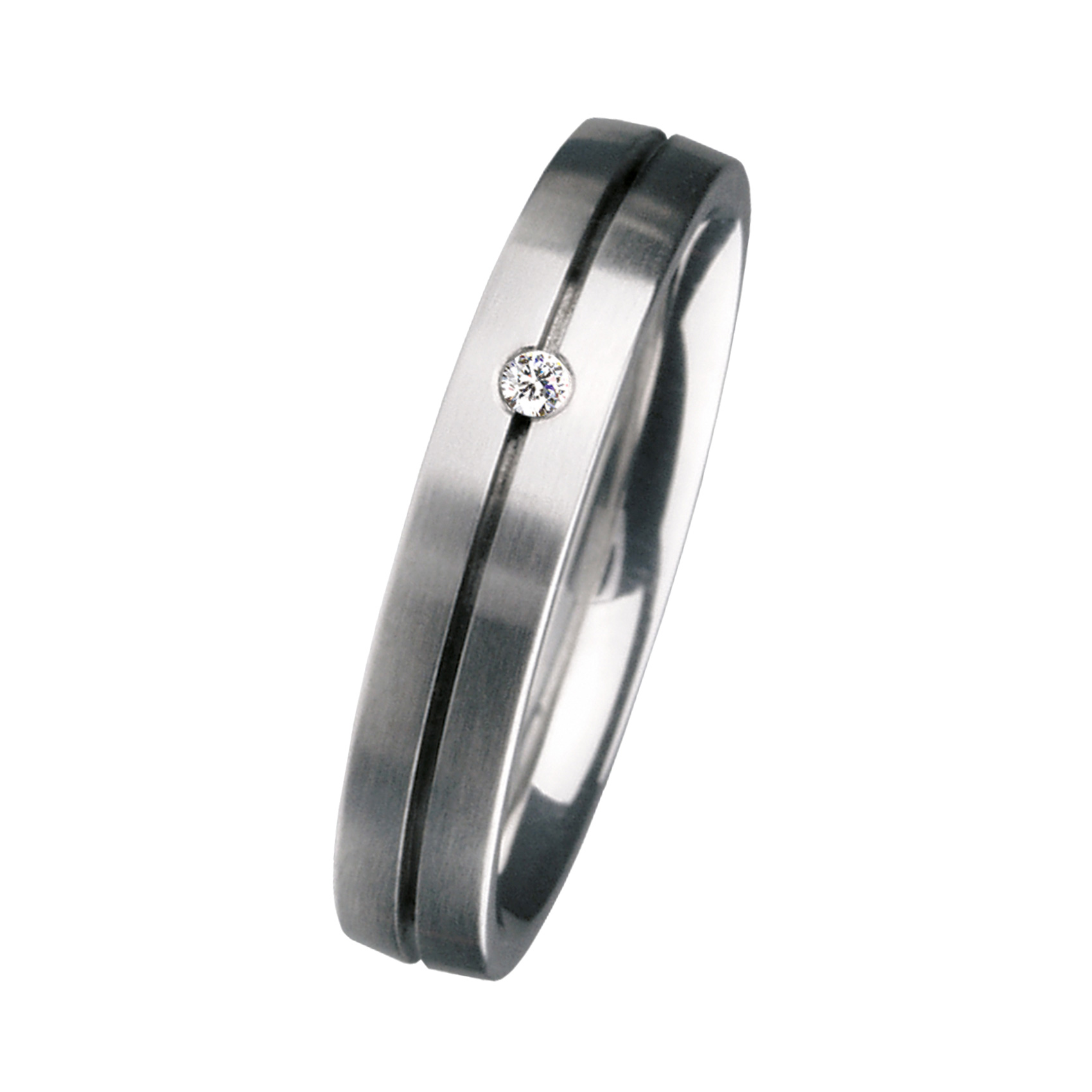 Der Ring aus unserer Schmuckmanufaktur ist aus Edelstahl gefertigt und besticht durch seine stilvoll matte Oberfläche. Der glänzende Brillant verleiht dem Ring eine edle Eleganz. - ERNSTES DESIGN Partnerringe sind langlebige Begleiter für Beziehung oder den Bund des Lebens -